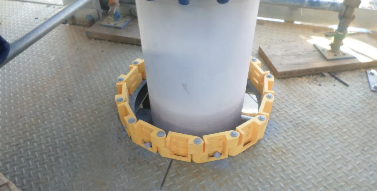 Pipe penetrations and open edges on platforms are considerate risk in industries like refineries, chemical plants, and marine environments. Toeboard Links (T5) provide an easy answer to this general problem. Specifically designed to surround these penetrations, their barrier prevents tools or materials from falling over the edge or through the openings causing potential damage and hazardous situation below.